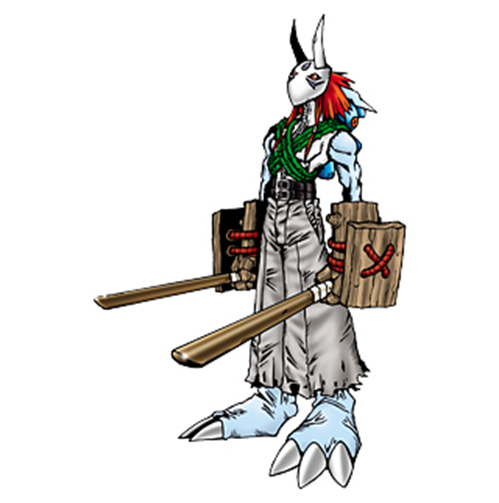 “純真のデジメンタル”のパワーによって進化したアーマー体の魔人型デジモン。鬼神のごとくパワーを発揮し、その攻撃力は凄まじいものがあるが、信義礼に厚く弱者を守る一面も持っている。また秘術に長けており、あらゆる超能力を使いこなすことができる。非常に寡黙で冷静沈着な性格の持ち主。必殺技は二刀の木刀をクロスさせ放つ衝撃波『一刀両断(イットウリョウダン)』と、幻惑の眼差しで相手を人形のように操る『クグツの術』。