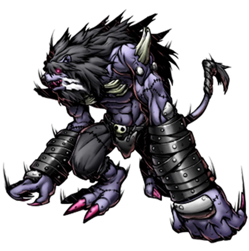 知能を失い闘争本能を高めた狂戦士。もともとは獅子型のデジモンだったが、改造に改造を重ねて今の姿に至った。その過程で意識は消失し、命ぜられるままに目の前に立つ者を倒す操り人形となってしまった。本能のままに行動し考えるということをしないため、罠や仕掛けがあってもお構いなしに突撃してしまう猛進を見せる。基本的には高パワーであるが、殴る・蹴るといった原始的な攻撃ばかりでパターンは少ない。ただ、その鋭い爪には猛毒が含まれており、あらゆるものを腐らせてしまうので注意が必要だ。唯一、必殺技らしいといえば獅子の顔の形をした『気』を放つ「獣王堕拳」である。放たれた獅子の顔の気は立ち塞がるものを食いちぎりながら飛んでゆく。